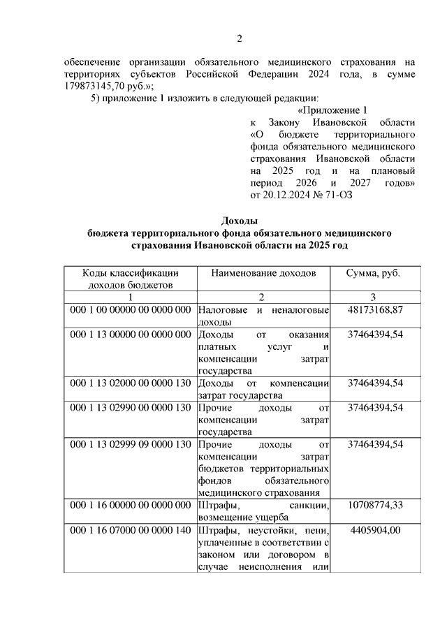 Закон Ивановской области от 29.04.2025 N 17-ОЗ "О внесении изменений в Закон Ивановской области "О бюджете территориального фонда обязательного медицинского страхования Ивановской области на 2025 год и на плановый период 2026 и 2027 годов" (принят Ивановской областной Думой 24.04.2025)