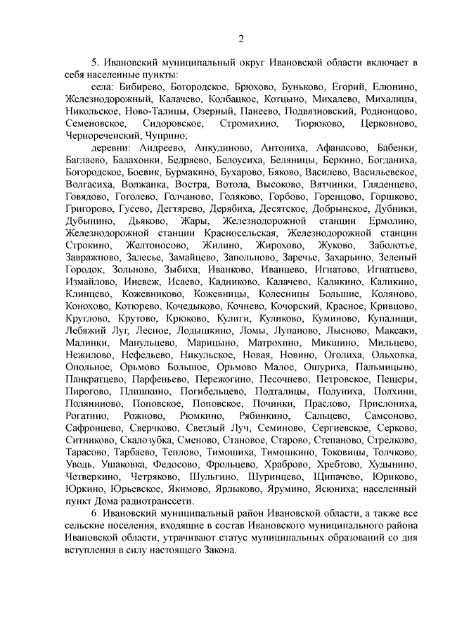 Закон Ивановской области от 02.06.2025 N 22-ОЗ "О преобразовании муниципальных образований, входящих в состав Ивановского муниципального района Ивановской области" (принят Ивановской областной Думой 29.05.2025)