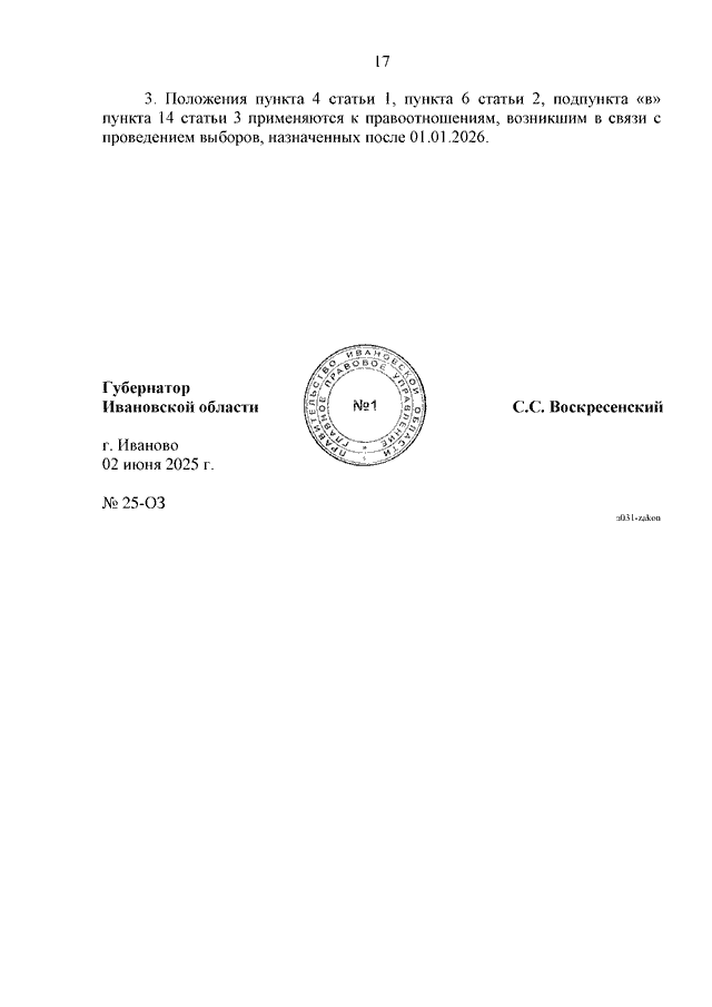 Закон Ивановской области от 02.06.2025 N 25-ОЗ "О внесении изменений в законы Ивановской области о выборах, референдумах и избирательных комиссиях" (принят Ивановской областной Думой 29.05.2025)