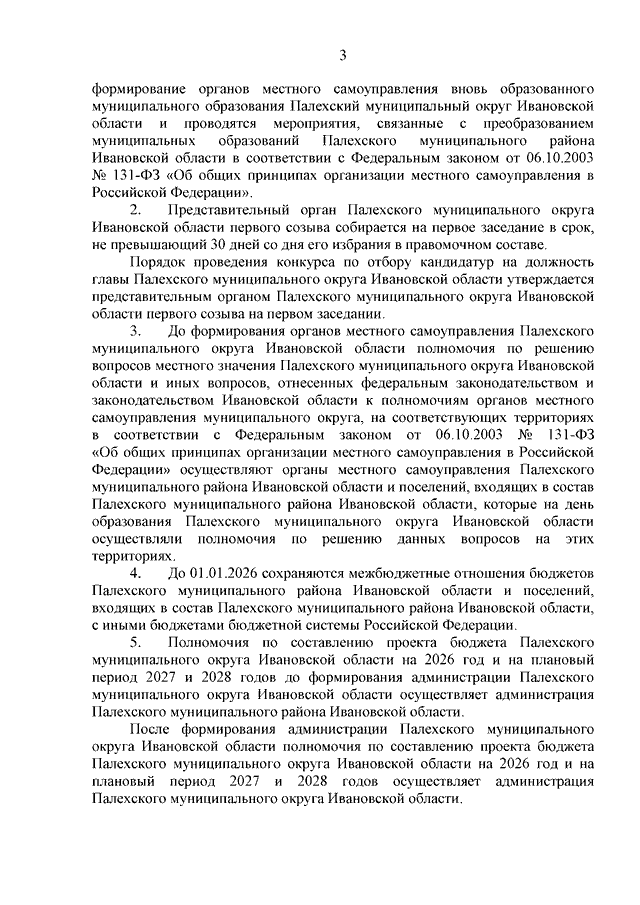 Закон Ивановской области от 02.06.2025 N 21-ОЗ "О преобразовании муниципальных образований, входящих в состав Палехского муниципального района Ивановской области" (принят Ивановской областной Думой 29.05.2025)
