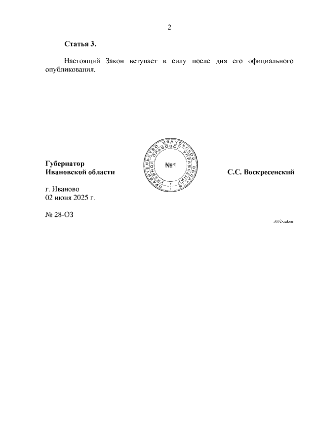 Закон Ивановской области от 02.06.2025 N 28-ОЗ "О внесении изменений в статью 12 Закона Ивановской области "О порядке предоставления жилых помещений специализированного государственного жилищного фонда Ивановской области" и статью 1 Закона Ивановской области "Об обеспечении жилыми помещениями некоторых категорий граждан" (принят Ивановской областной Думой 29.05.2025)