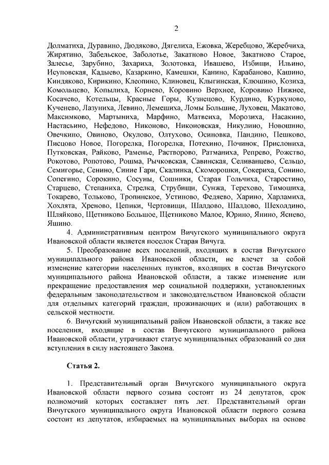 Закон Ивановской области от 02.06.2025 N 24-ОЗ "О преобразовании муниципальных образований, входящих в состав Вичугского муниципального района Ивановской области" (принят Ивановской областной Думой 29.05.2025)
