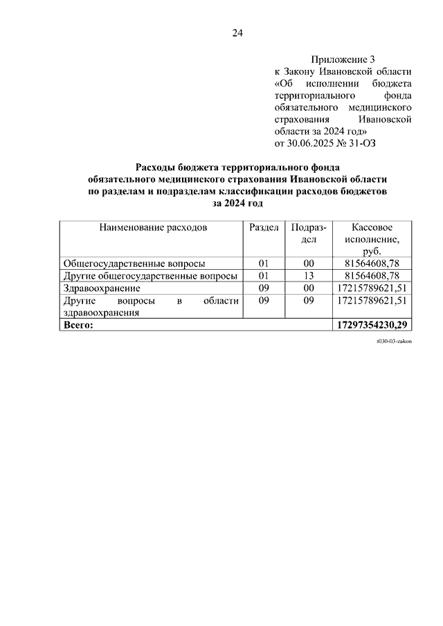 Закон Ивановской области от 30.06.2025 N 31-ОЗ "Об исполнении бюджета территориального фонда обязательного медицинского страхования Ивановской области за 2024 год" (принят Ивановской областной Думой 26.06.2025)