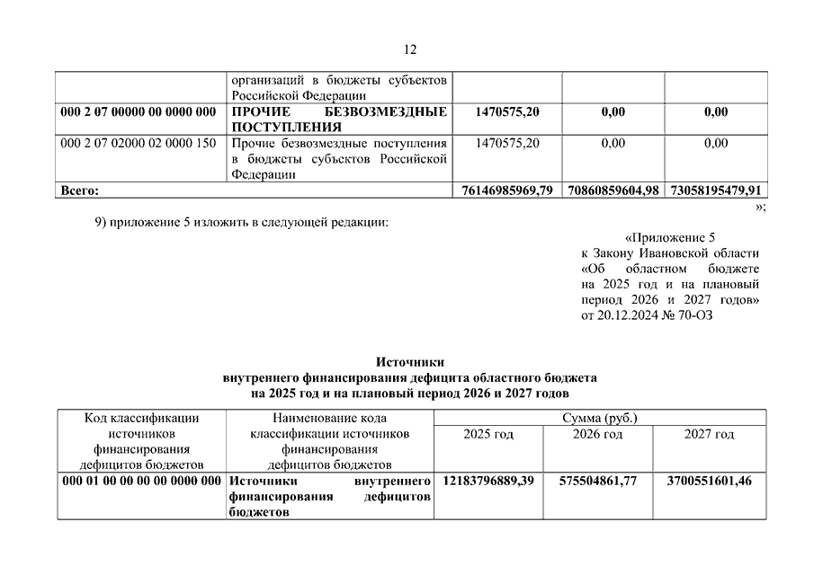 Закон Ивановской области от 30.06.2025 N 30-ОЗ "О внесении изменений в Закон Ивановской области "Об областном бюджете на 2025 год и на плановый период 2026 и 2027 годов" (принят Ивановской областной Думой 26.06.2025)