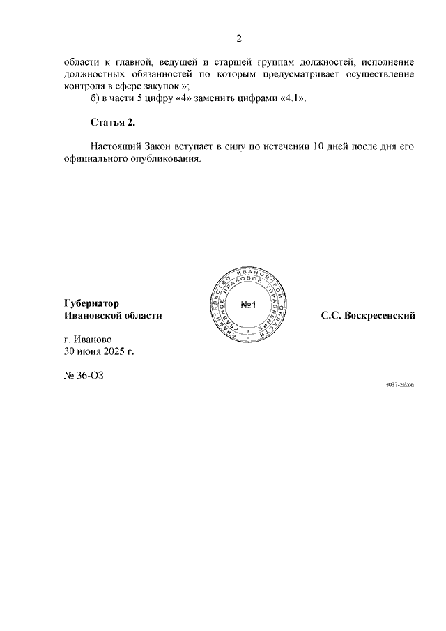 Закон Ивановской области от 30.06.2025 N 36-ОЗ "О внесении изменений в Закон Ивановской области "Об административных правонарушениях в Ивановской области" (принят Ивановской областной Думой 26.06.2025)