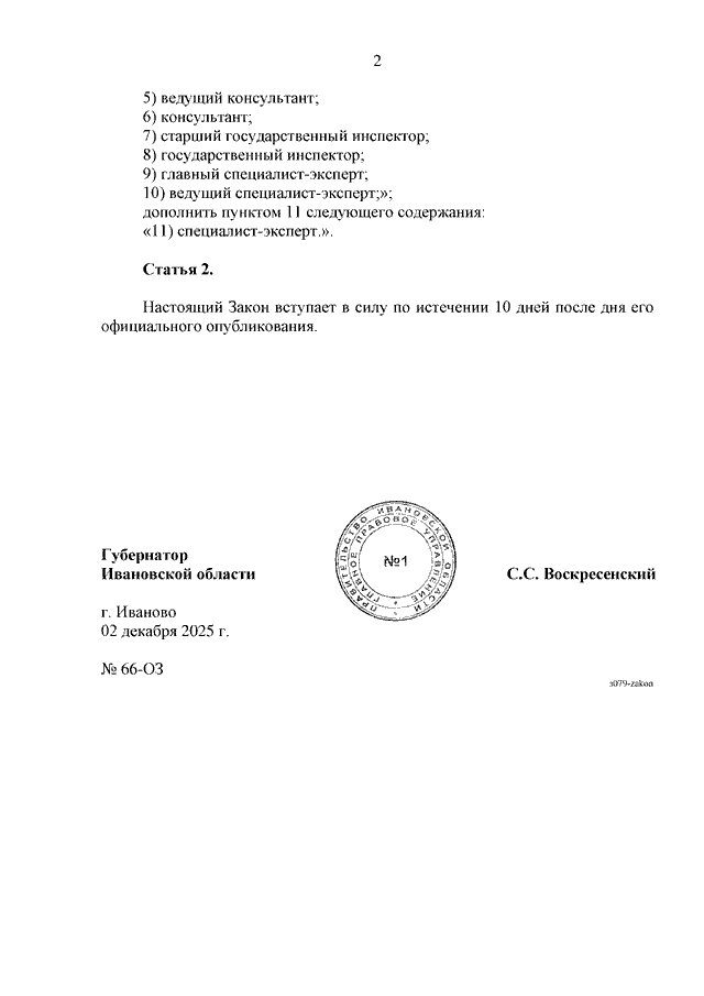Закон Ивановской области от 02.12.2025 N 66-ОЗ "О внесении изменений в статью 11.2 Закона Ивановской области "Об административных правонарушениях в Ивановской области" (принят Ивановской областной Думой 27.11.2025)