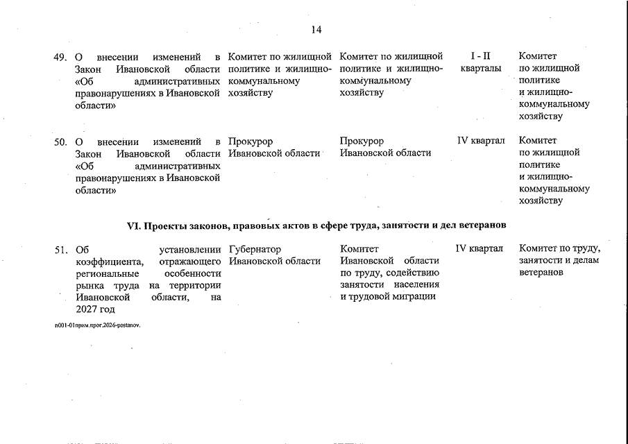 Постановление Ивановской областной Думы от 29.01.2026 N 3 "О примерной программе законопроектной работы Ивановской областной Думы на 2026 год"